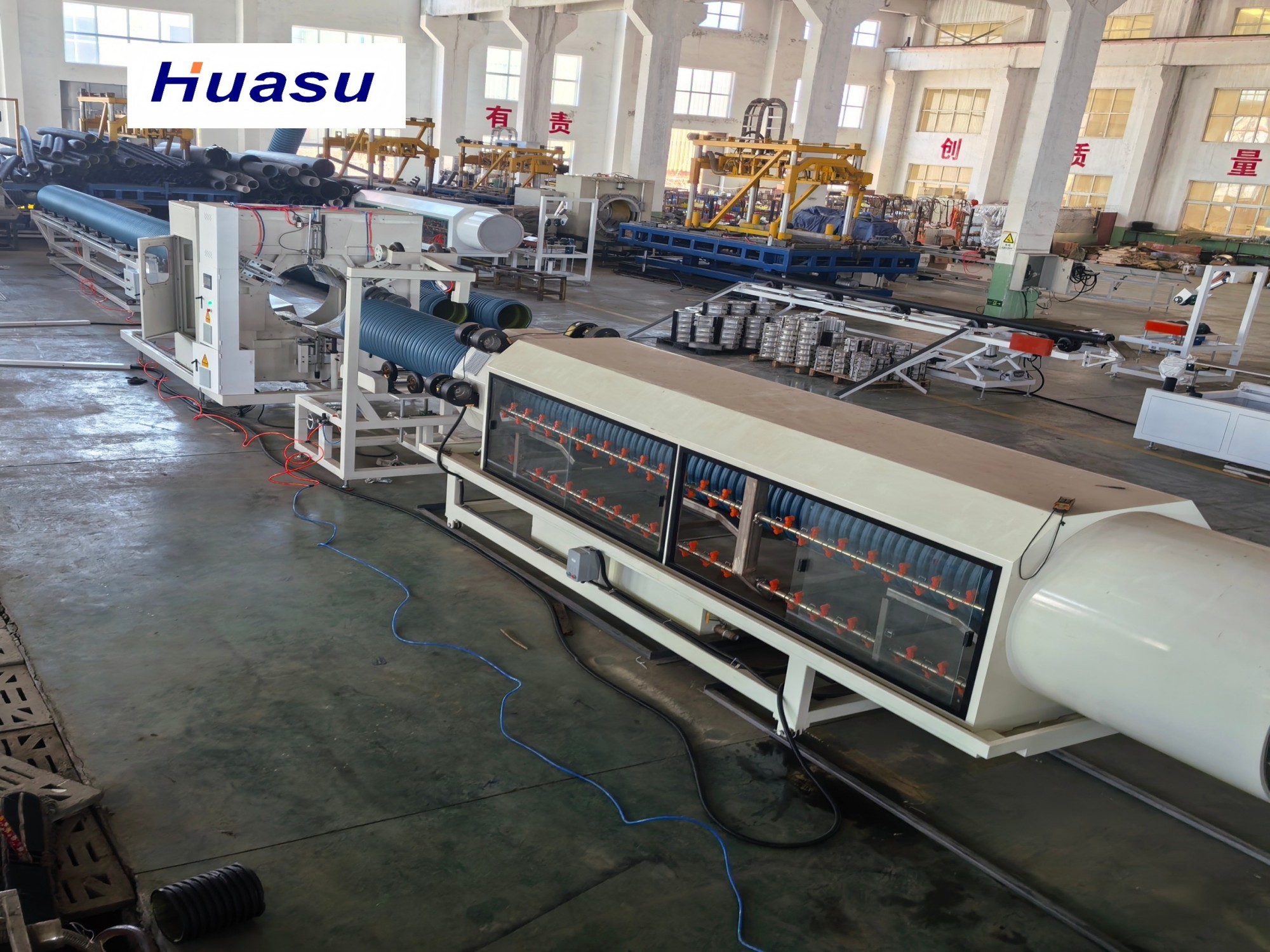 Przewód rur falistej jest trzecią generacją ulepszonego produktu Shandong HUASU.Wydajność wytłaczacza i prędkość produkcji rury są znacznie zwiększone o 20-40% w porównaniu z poprzednim produktem.