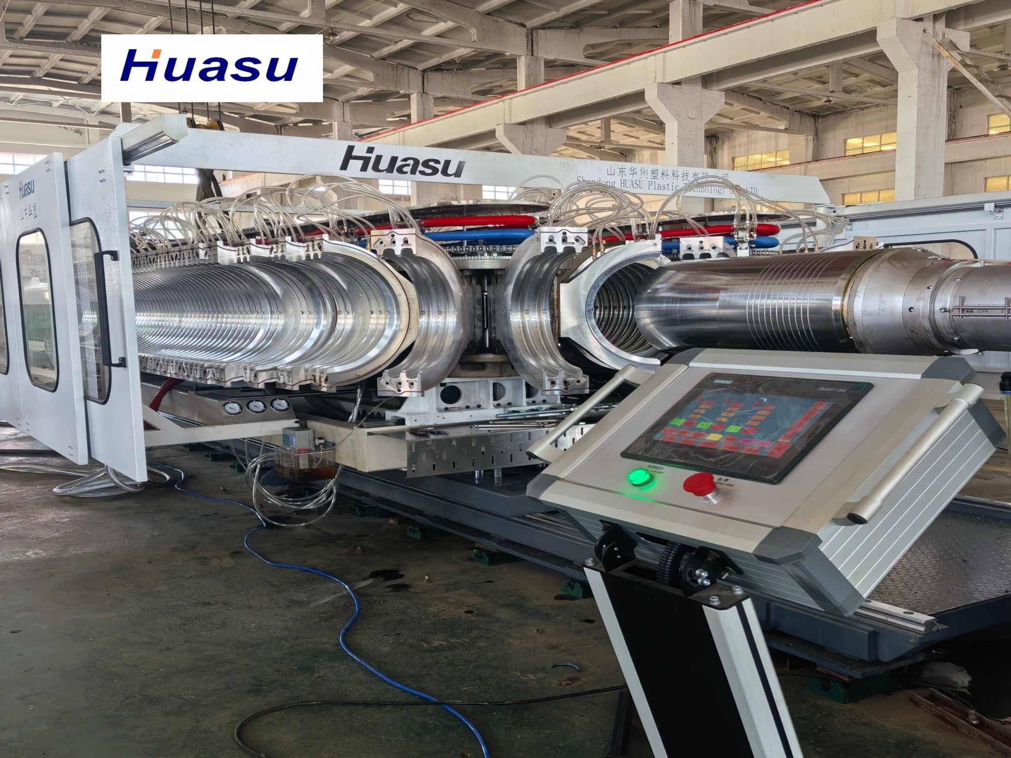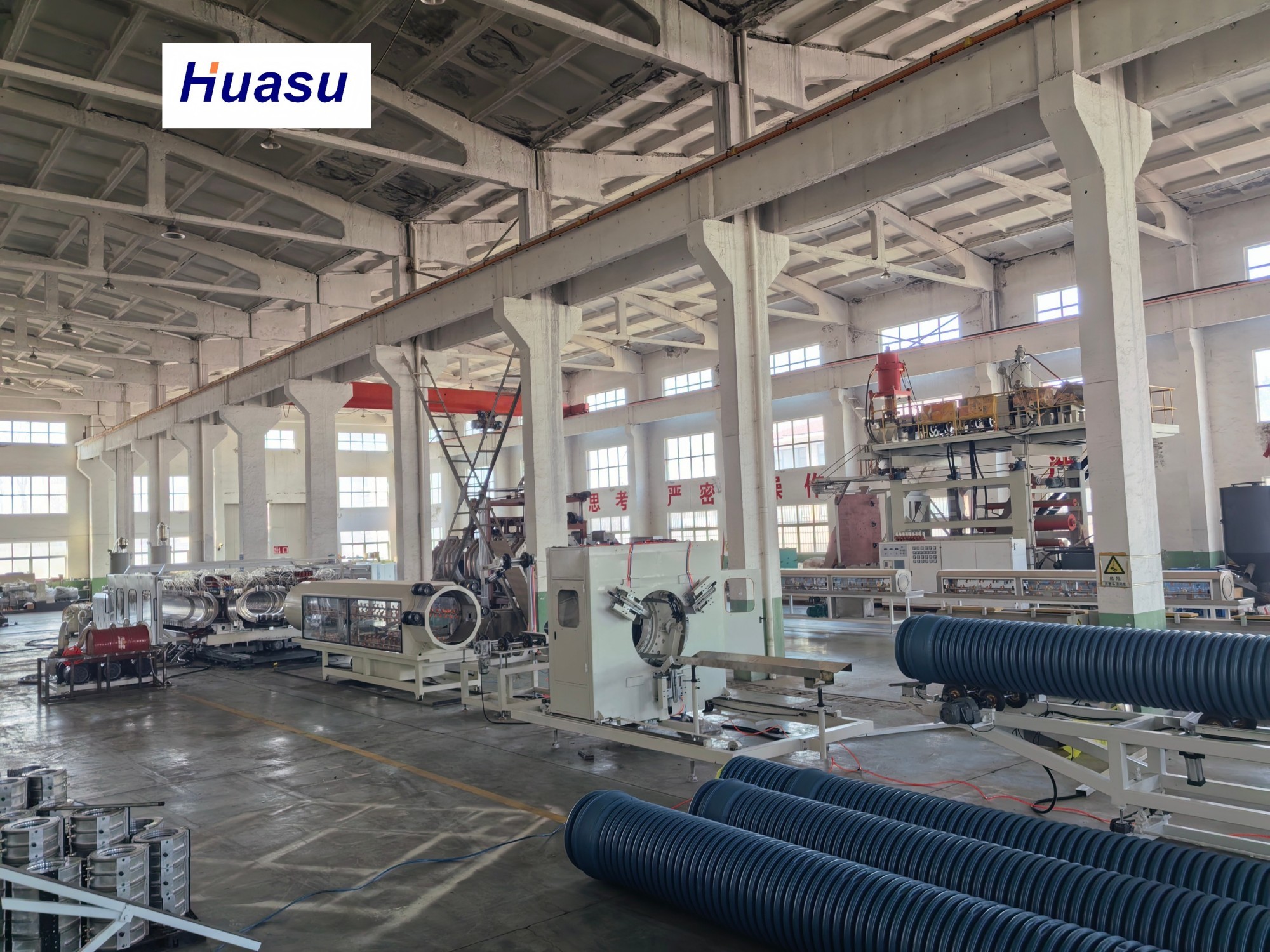 Przewód rur falistej jest trzecią generacją ulepszonego produktu Shandong HUASU.Ten zaawansowany system znacząco zwiększył wydajność wytłaczacza i prędkość produkcji rury o 20-40% w porównaniu z poprzednikiem.