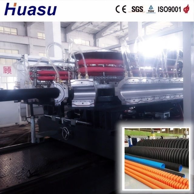 Linia do produkcji rur dwuściennych karbowanych reprezentuje produkt trzeciej generacji ulepszony przez Shandong HUASU, zapewniając niezwykły wzrost wydajności wytłaczarki i prędkości produkcji o 20-40% w porównaniu do poprzednich modeli.